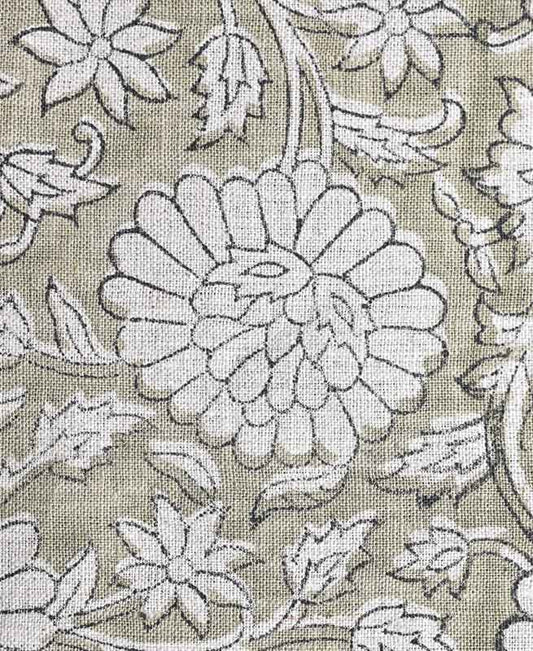 Jamie Block Print Handloom Linen Floral Designer Fabric – Heavy Upholstery & Home Decor