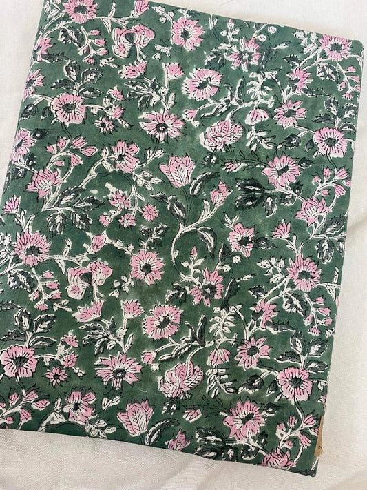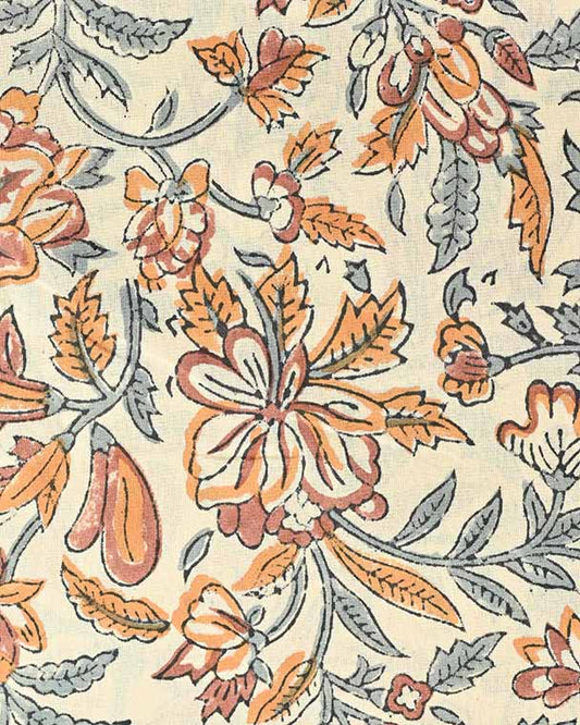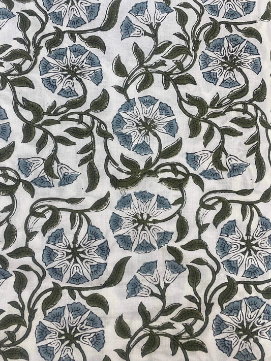 Roseline Hand Block Print Designer Floral Cotton Fabric