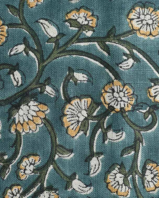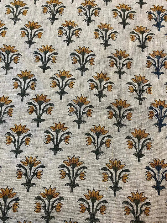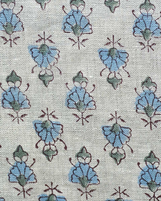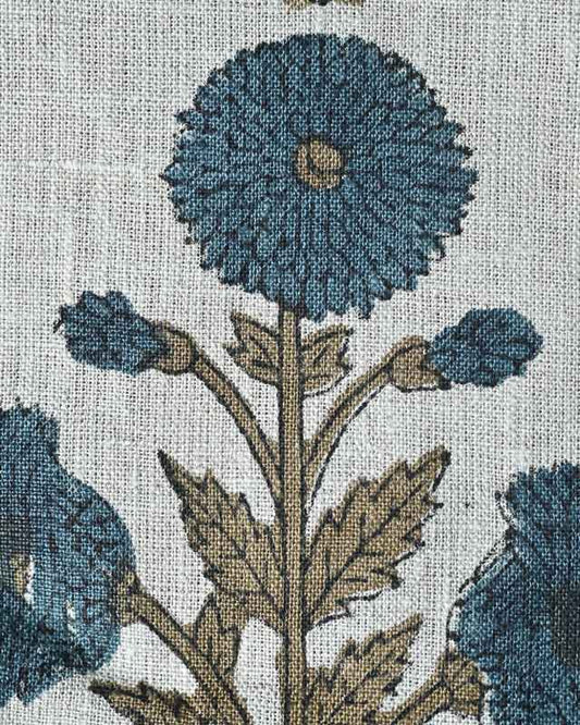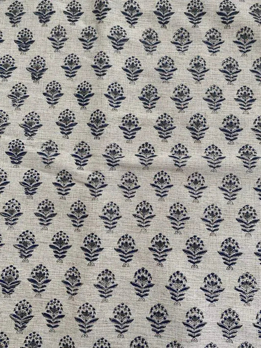 Diane Hand Block Printed Linen Fabric For Upholstery