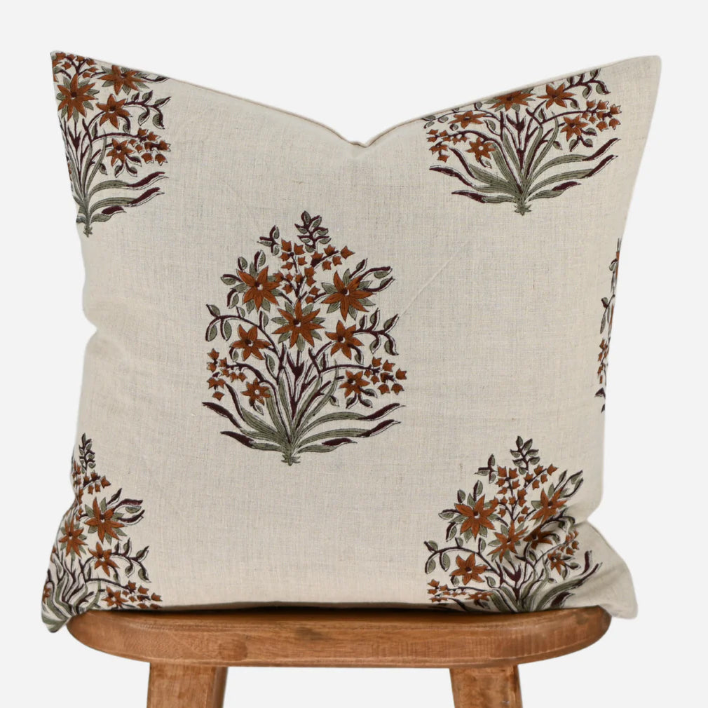 With a beautiful all-over floral print, this pillow cover is brought to life through traditional block printing. Each design is carved into wooden blocks and carefully printed by hand, one layer at a time, by skilled artisans in India. The result is a richly detailed piece—crafted with care, defined by timeless style, and truly one of a kind. Effortlessly versatile, it layers into both relaxed and refined spaces with ease.
