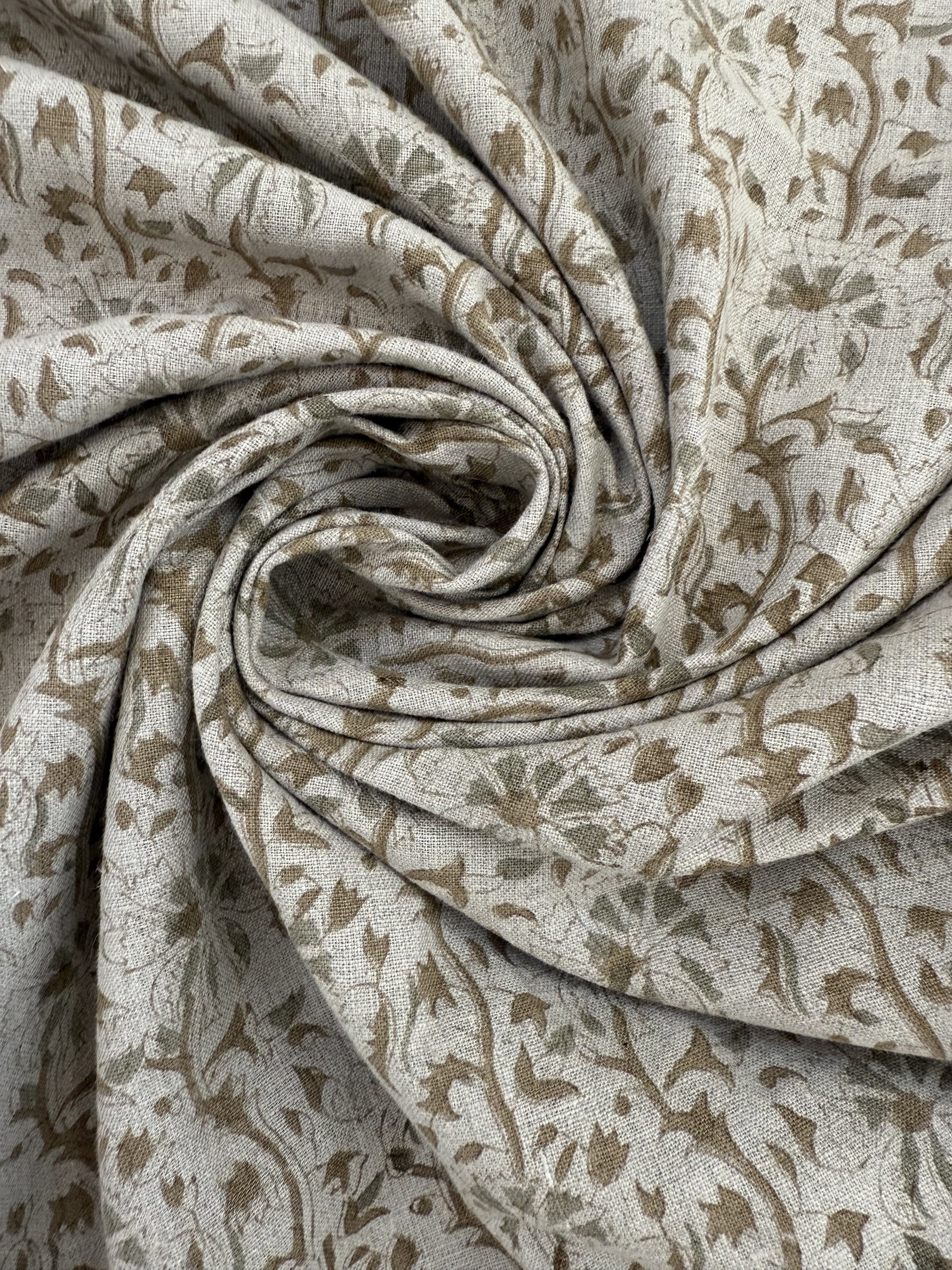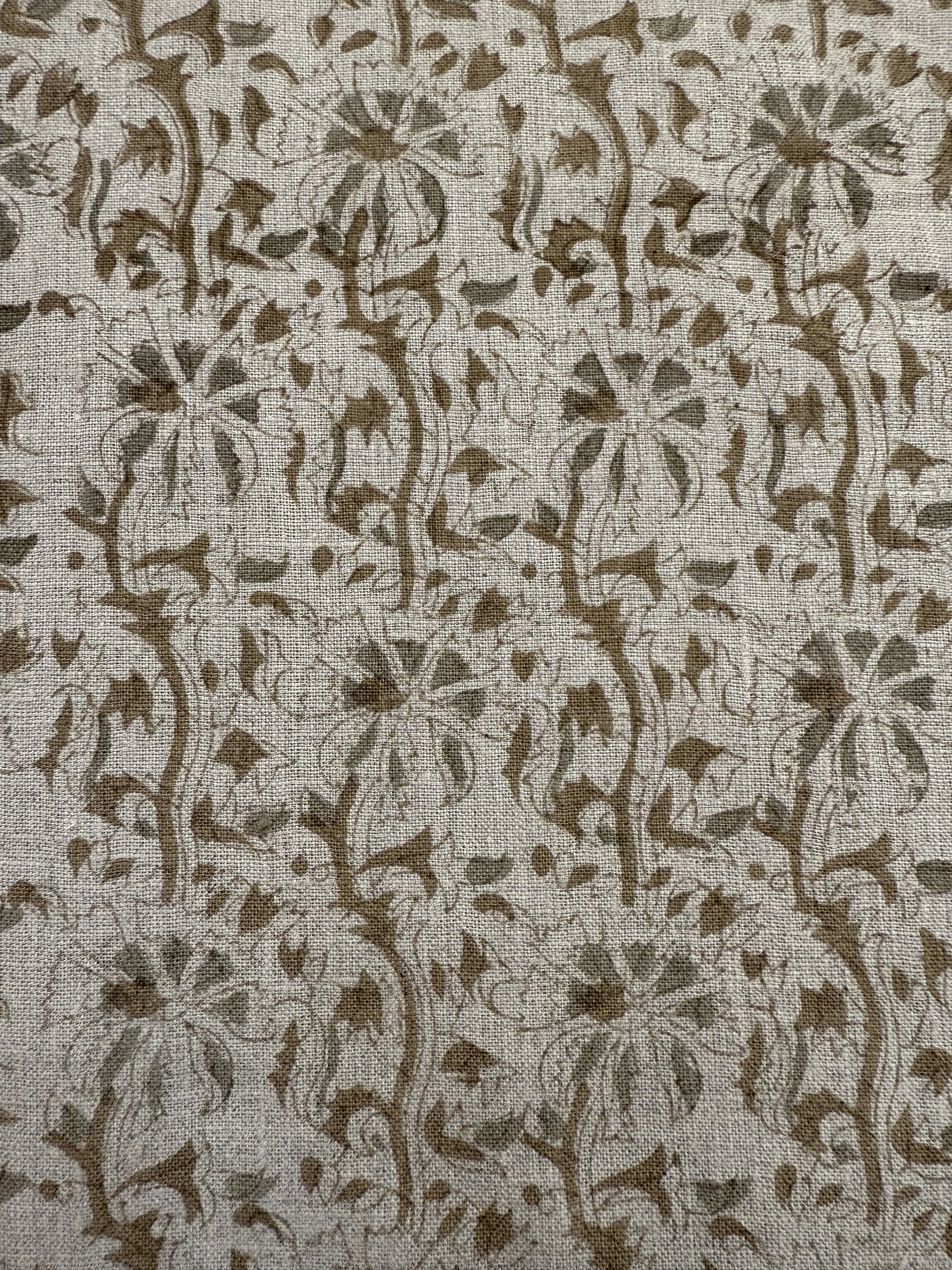 Hand-carved nature-inspired motifs unfold across this fabric in a rhythmic, repeating design. Each layer is block printed by hand using centuries-old techniques passed down through generations of artisans in India. The result is a textile rich in character—bringing softness, dimension, and a distinctly human touch to any space. Designed to layer with ease, it complements both relaxed and refined interiors.