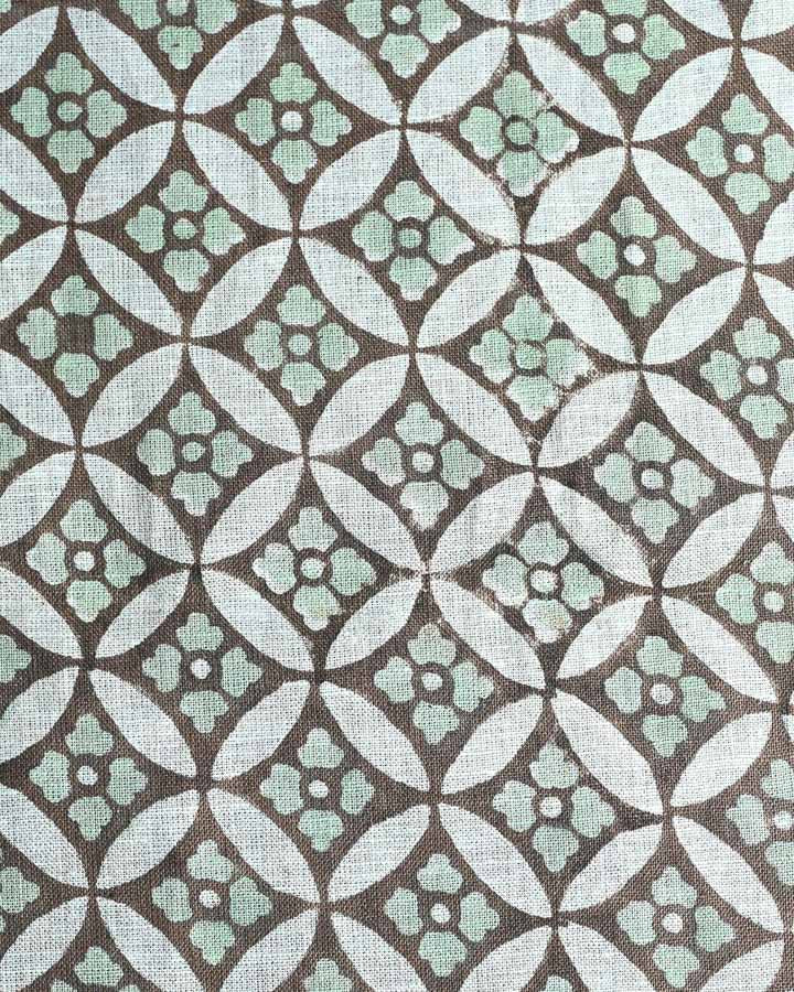 Hand-carved nature-inspired motifs unfold across this fabric in a rhythmic, repeating design. Each layer is block printed by hand using centuries-old techniques passed down through generations of artisans in India. The result is a textile rich in character—bringing softness, dimension, and a distinctly human touch to any space. Designed to layer with ease, it complements both relaxed and refined interiors.