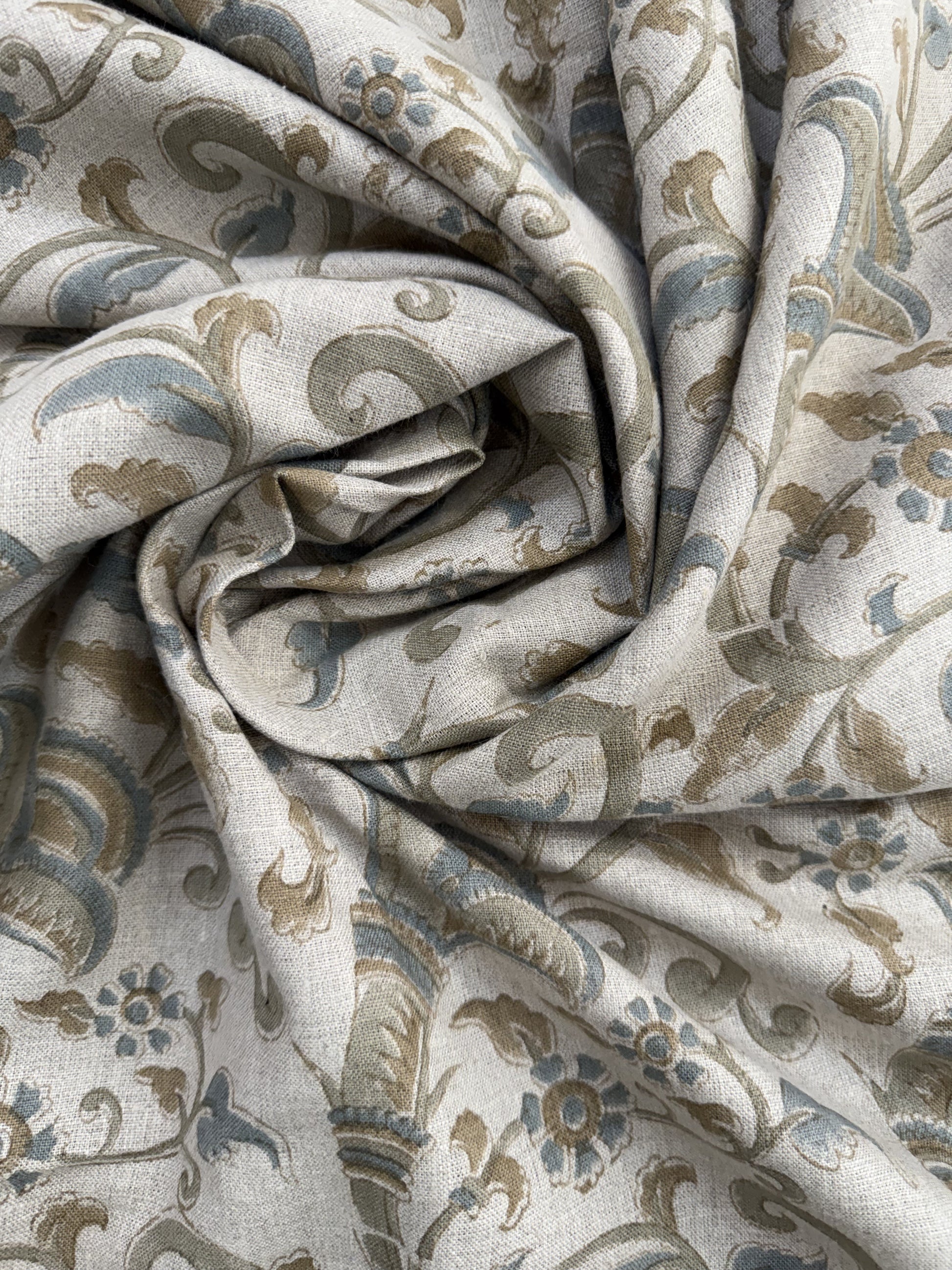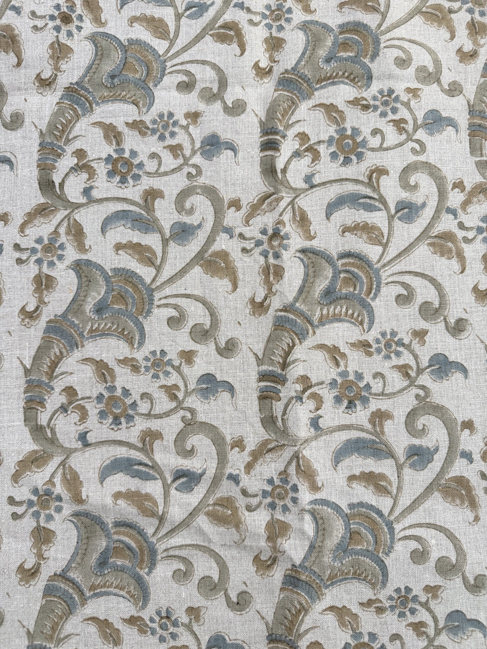 Hand-carved nature-inspired motifs unfold across this fabric in a rhythmic, repeating design. Each layer is block printed by hand using centuries-old techniques passed down through generations of artisans in India. The result is a textile rich in character—bringing softness, dimension, and a distinctly human touch to any space. Designed to layer with ease, it complements both relaxed and refined interiors.