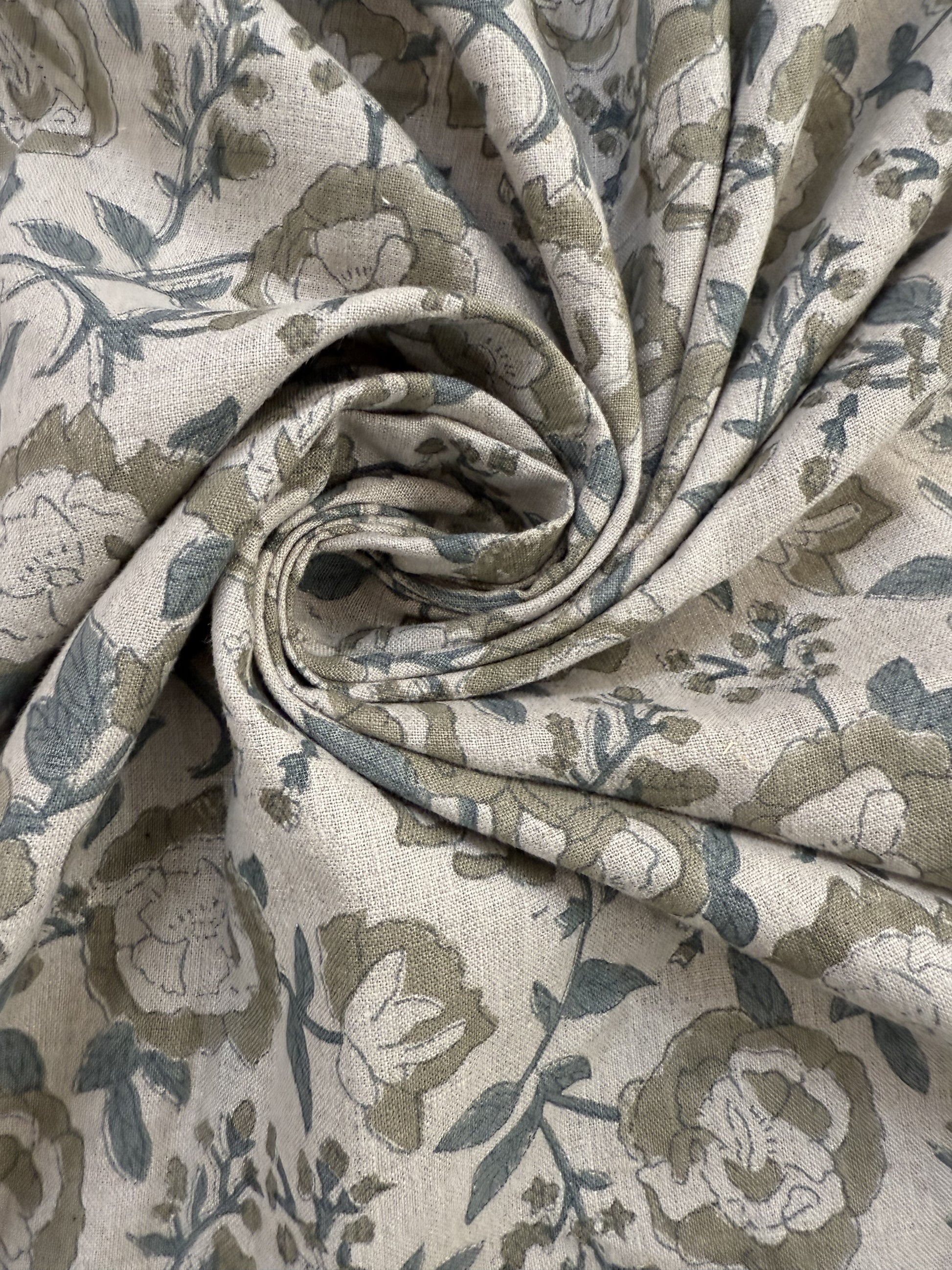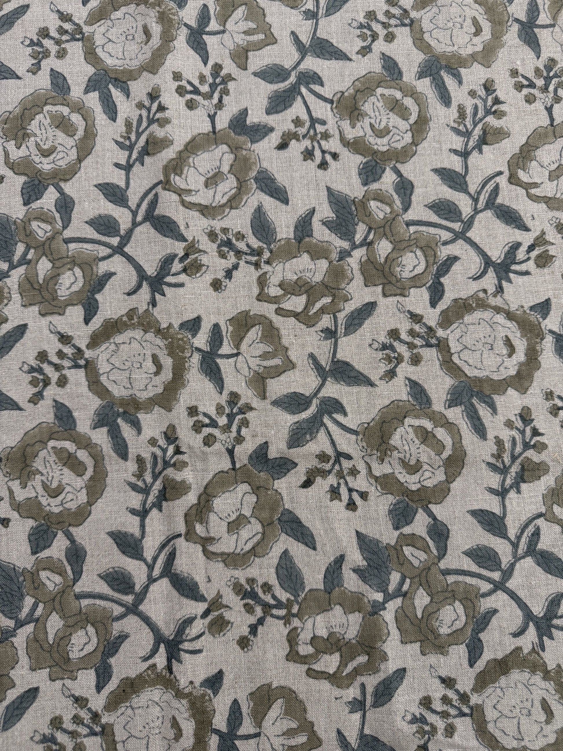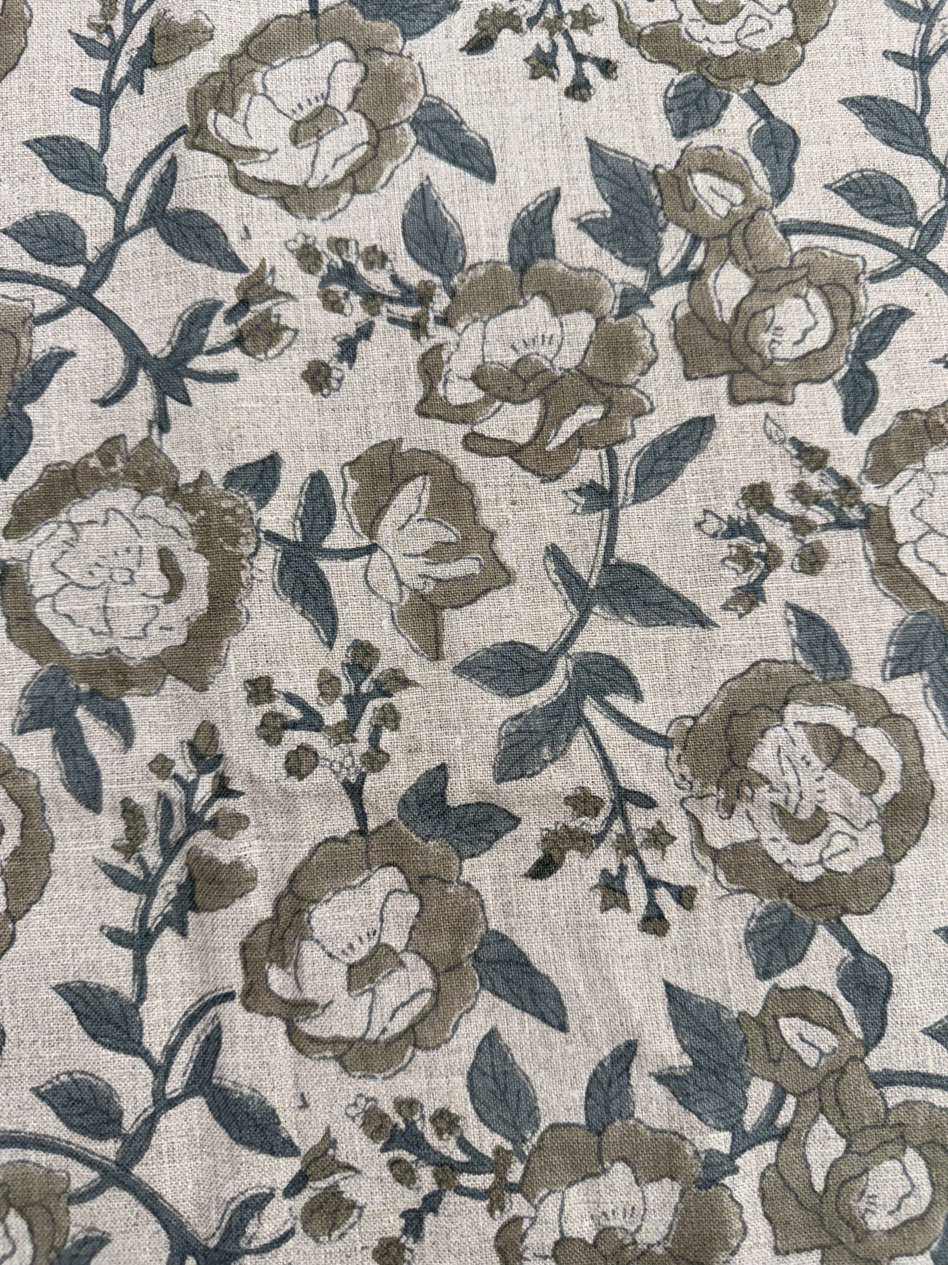 Hand-carved nature-inspired motifs unfold across this fabric in a rhythmic, repeating design. Each layer is block printed by hand using centuries-old techniques passed down through generations of artisans in India. The result is a textile rich in character—bringing softness, dimension, and a distinctly human touch to any space. Designed to layer with ease, it complements both relaxed and refined interiors.