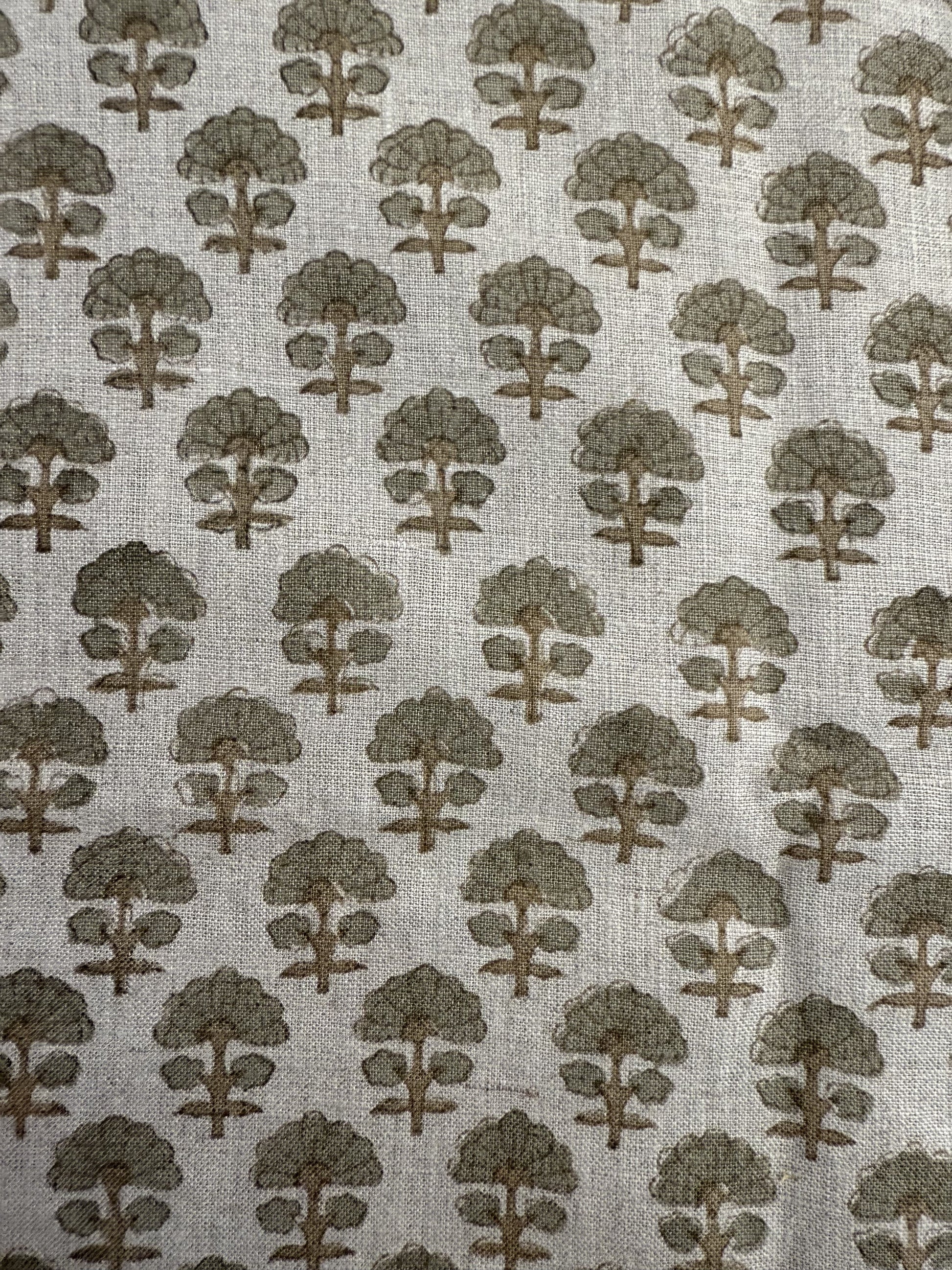 Hand-carved nature-inspired motifs unfold across this fabric in a rhythmic, repeating design. Each layer is block printed by hand using centuries-old techniques passed down through generations of artisans in India. The result is a textile rich in character—bringing softness, dimension, and a distinctly human touch to any space. Designed to layer with ease, it complements both relaxed and refined interiors.