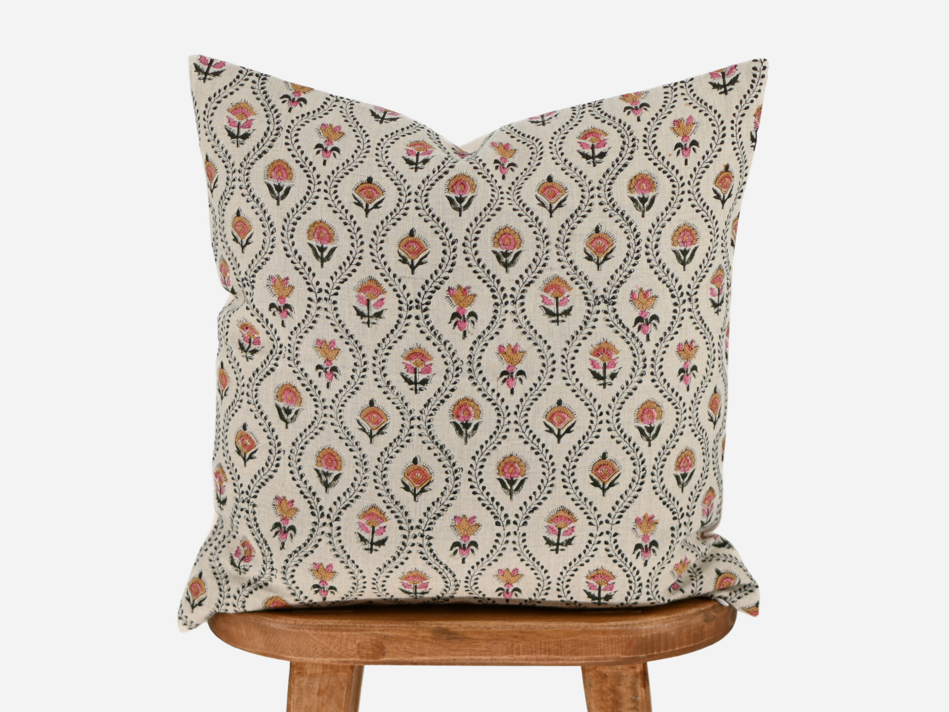 With a beautiful all-over floral print, this pillow cover is brought to life through traditional block printing. Each design is carved into wooden blocks and carefully printed by hand, one layer at a time, by skilled artisans in India. The result is a richly detailed piece—crafted with care, defined by timeless style, and truly one of a kind. Effortlessly versatile, it layers into both relaxed and refined spaces with ease.
