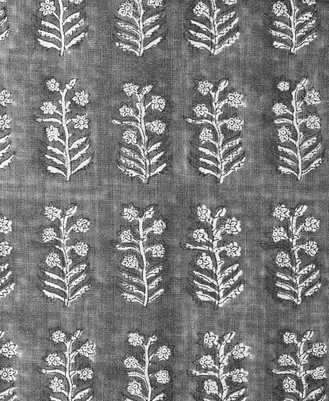 Hand-carved nature-inspired motifs unfold across this fabric in a rhythmic, repeating design. Each layer is block printed by hand using centuries-old techniques passed down through generations of artisans in India. The result is a textile rich in character—bringing softness, dimension, and a distinctly human touch to any space. Designed to layer with ease, it complements both relaxed and refined interiors.