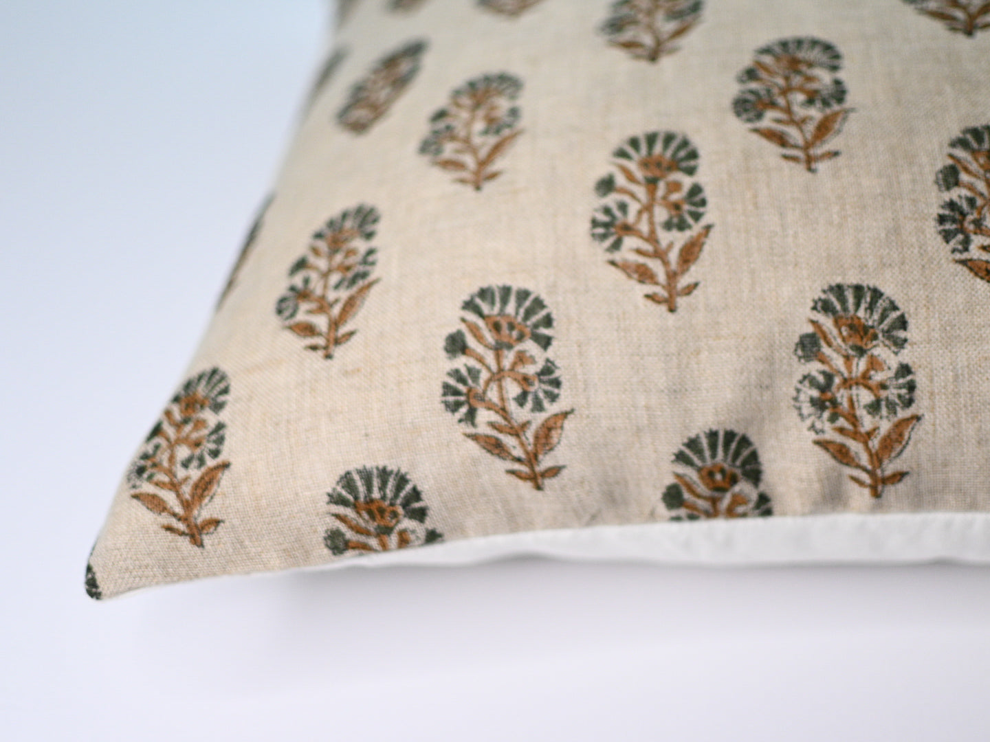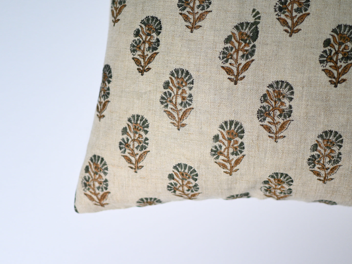 With a beautiful all-over floral print, this pillow cover is brought to life through traditional block printing. Each design is carved into wooden blocks and carefully printed by hand, one layer at a time, by skilled artisans in India. The result is a richly detailed piece—crafted with care, defined by timeless style, and truly one of a kind. Effortlessly versatile, it layers into both relaxed and refined spaces with ease.