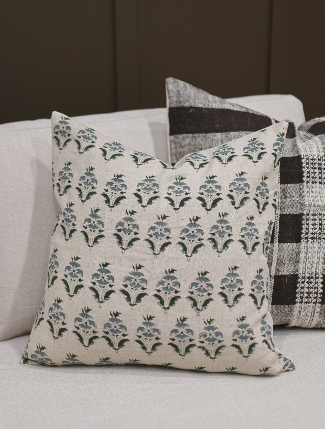 With a beautiful all-over floral print, this pillow cover is brought to life through traditional block printing. Each design is carved into wooden blocks and carefully printed by hand, one layer at a time, by skilled artisans in India. The result is a richly detailed piece—crafted with care, defined by timeless style, and truly one of a kind. Effortlessly versatile, it layers into both relaxed and refined spaces with ease.