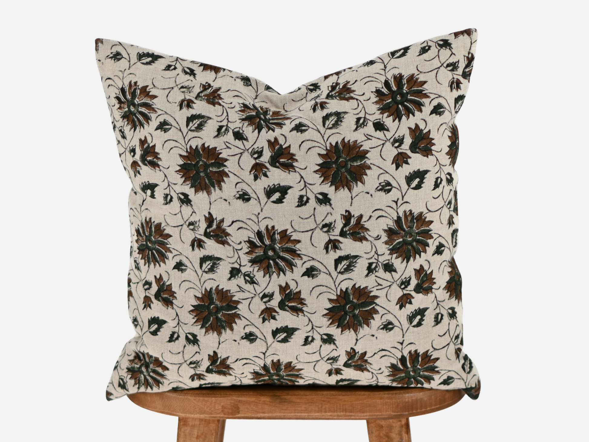 With a beautiful all-over botanical print, this pillow cover is brought to life through traditional block printing. Each design is carved into wooden blocks and carefully printed by hand, one layer at a time, by skilled artisans in India. The result is a richly detailed piece—crafted with care, defined by timeless style, and truly one of a kind. Effortlessly versatile, it layers into both relaxed and refined spaces with ease.